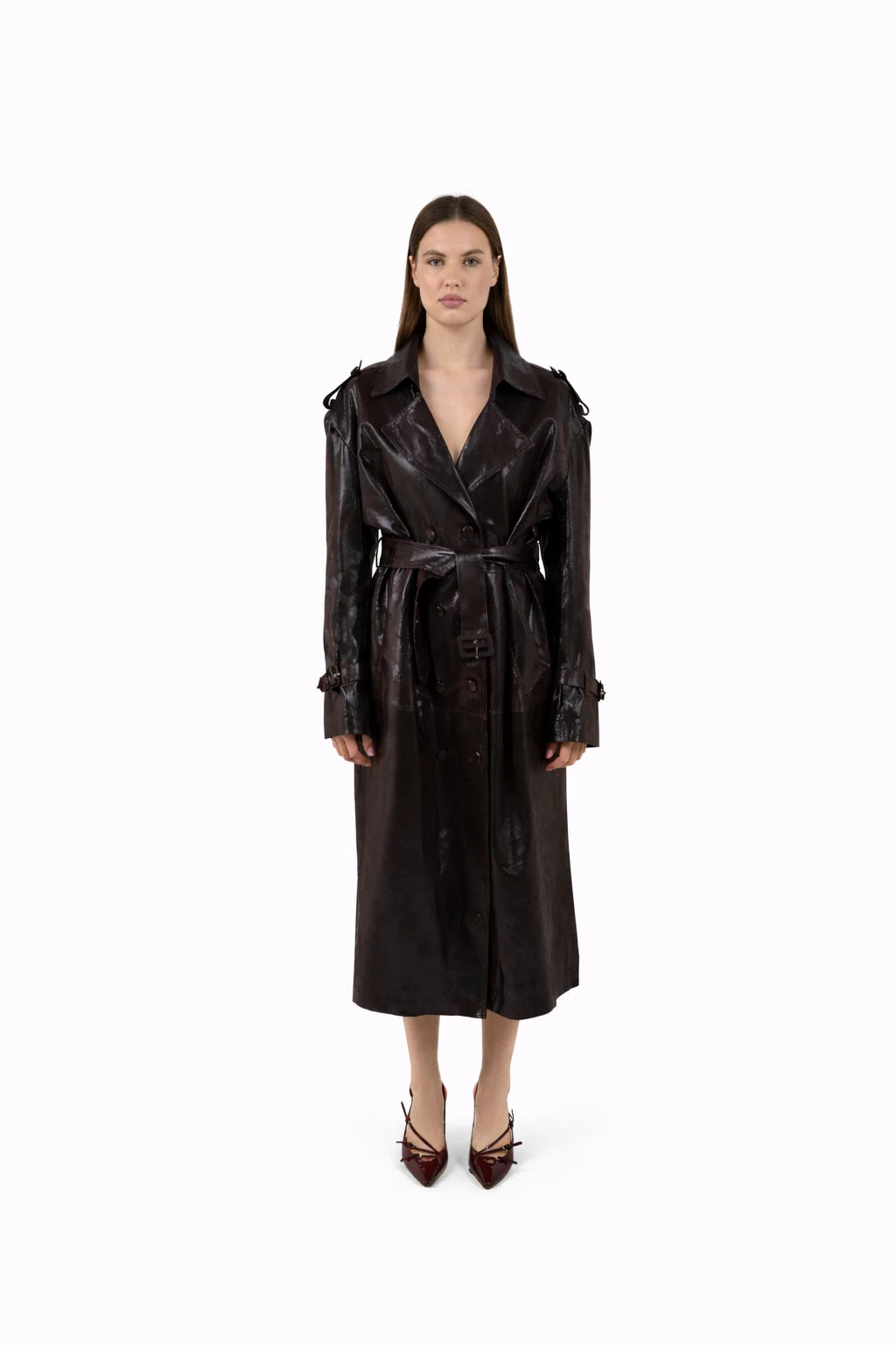 THE GLOSS BURGUNDY TRENCH COAT